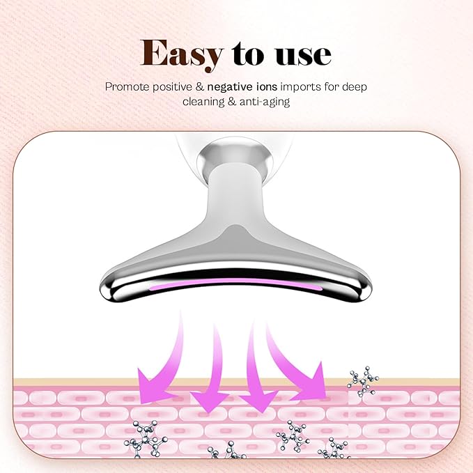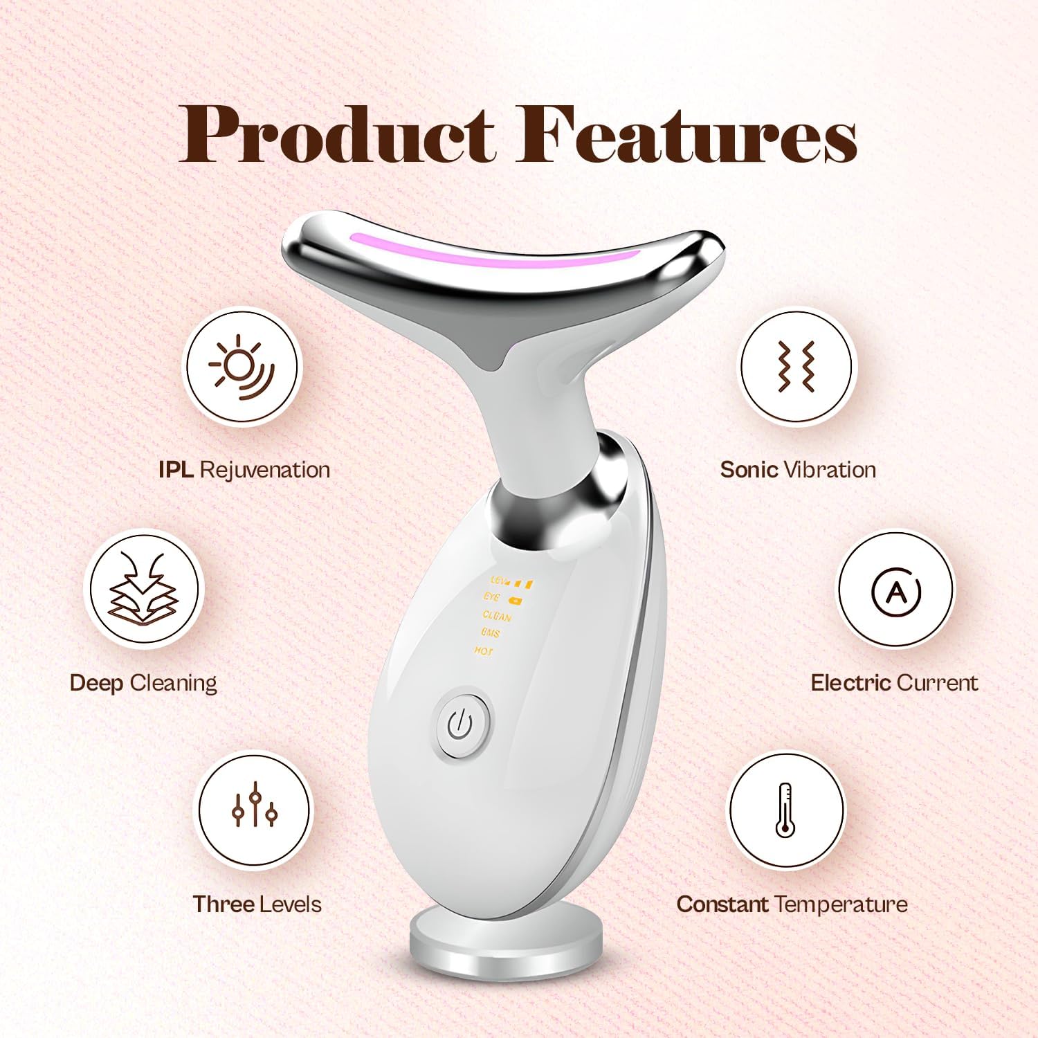 Revive your skin with this 3-in-1 EMS facial massager! Designed to lift and tone your face, neck, and jawline, it features LED light therapy, soothing heat, and microcurrent technology. Improve elasticity, reduce wrinkles, and glow with youthful radiance!